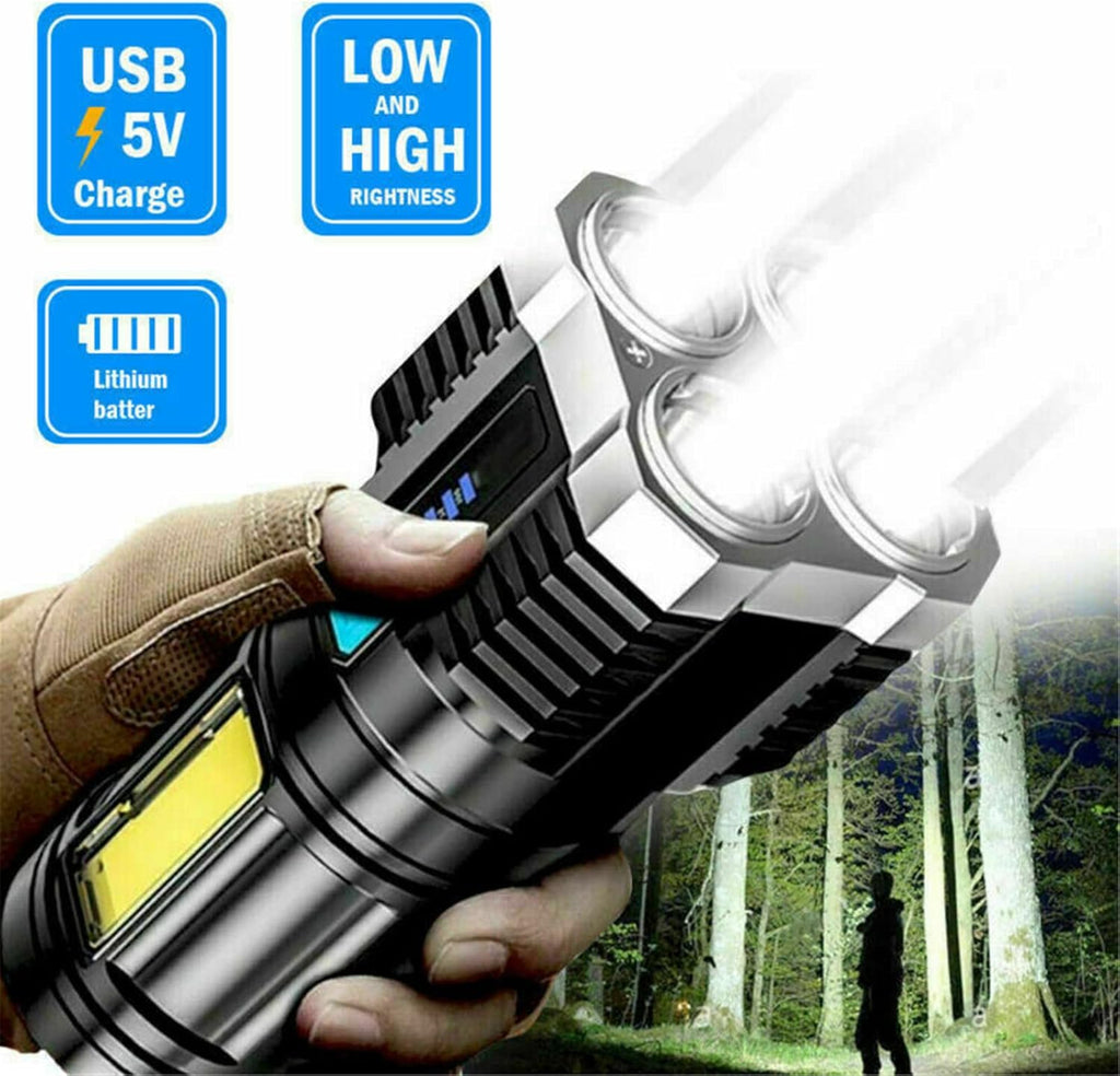 Descubre la lanterna mega iluminación que transforma la oscuridad en luz potente y segura. Con 4 modos ajustables y luz lateral COB, esta linterna recargable es perfecta para aventuras al aire libre, emergencias en el hogar o cualquier situación donde necesites máxima visibilidad.